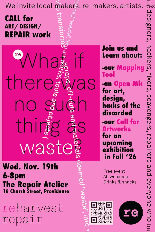 Wednesday, Nov. 19th, 6-8pm at The Repair Atelier, 16 Church Street, Providence